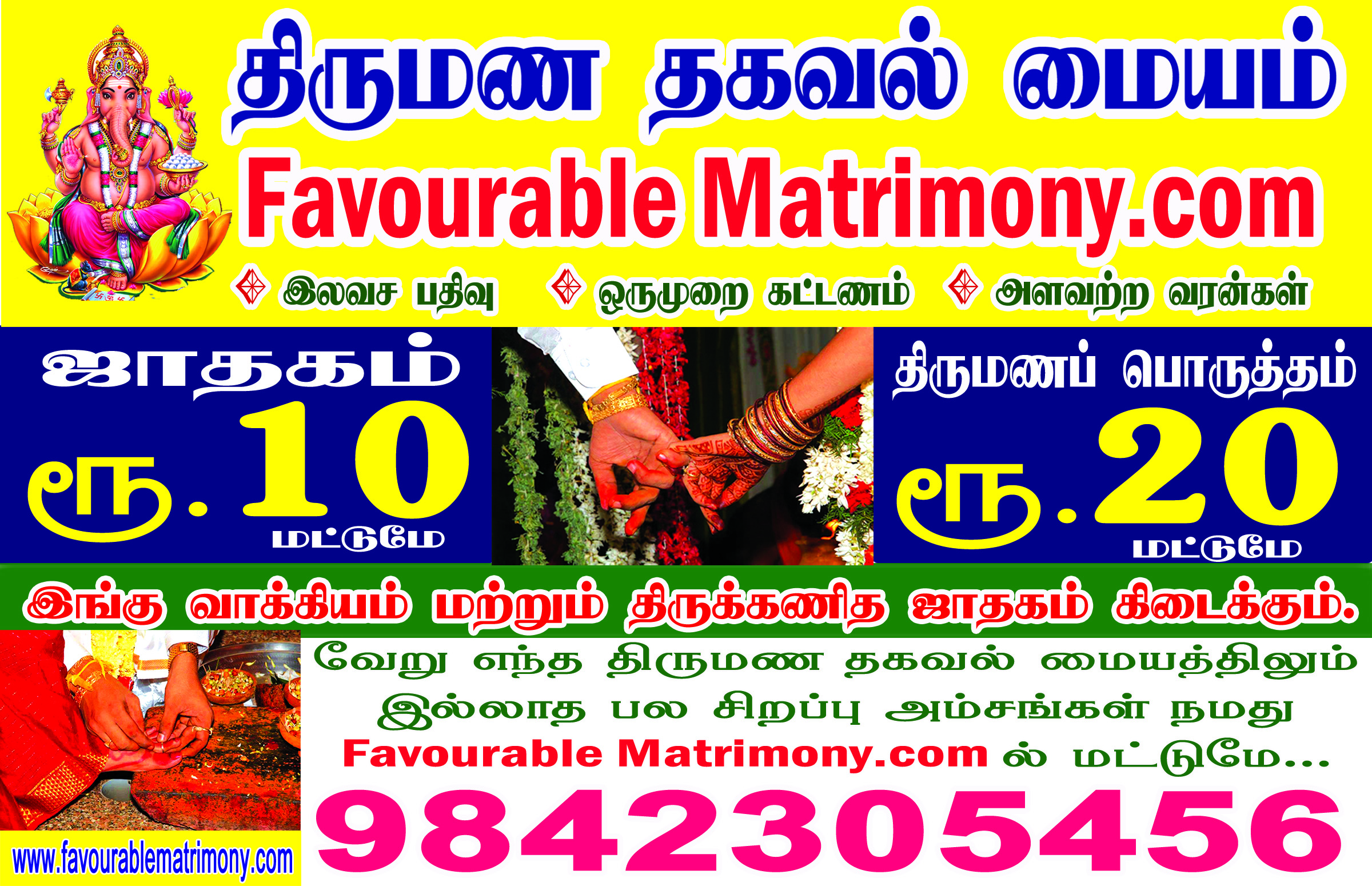 இணையதள திருமண தகவல் மையம் குறைந்த செலவில் நிறைந்த பயன் திருமணம் முடியும் வரை ஒரு முறை கட்டணம். (Awareness matrimony) வரன் முடிந்தவுடன் எங்களுக்கு தெரியபடுத்தவும். எந்த புதுப்பித்தல் கட்டணமும் இல்லை